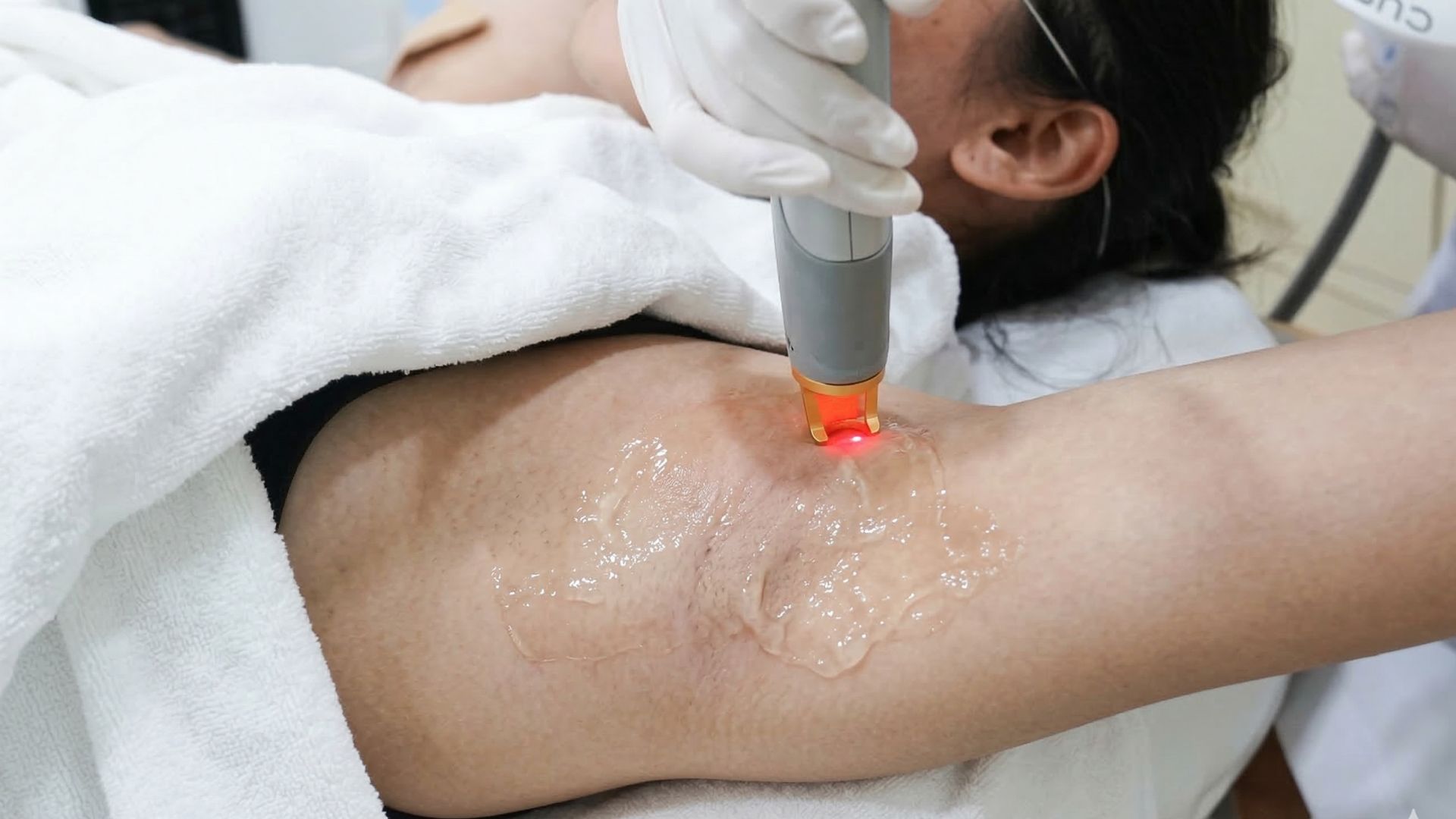 Điều trị thâm nách do cơ địa, nội tiết, ma sát hoặc lăn khử mùi bằng sóng siêu âm giúp phân rã sắc tố và làm mịn bề mặt da.